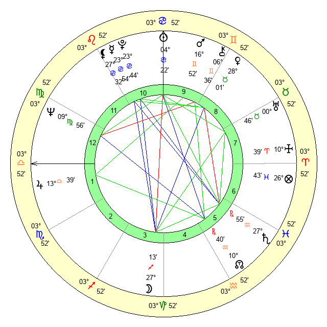 | Jupiter | 13 Libra 23 | 3 Cancer 51 | 26 Libra 30 |
