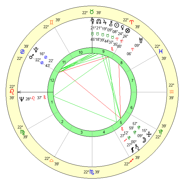 | Neptune | 28 Leo 37 | 1 Aries 3 | 0 Virgo 21 |