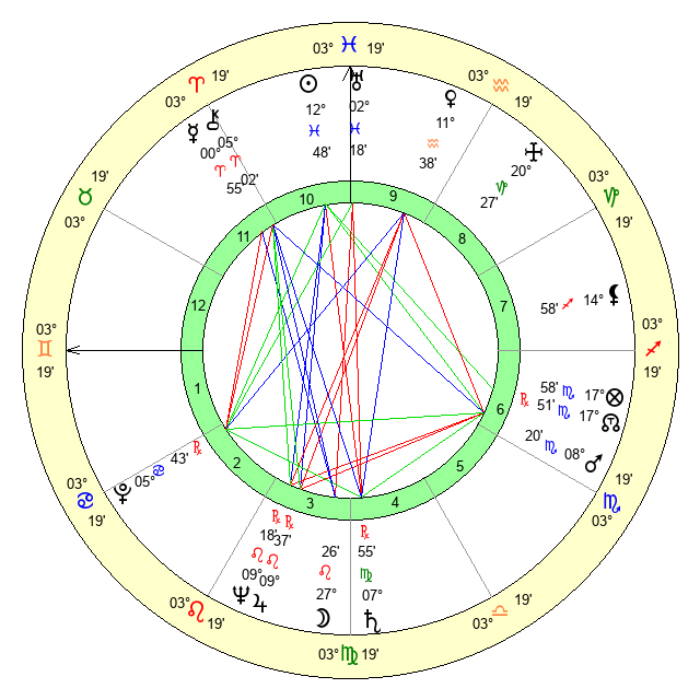 | Saturn | 8 Virgo 42 | 20 Pisces 57 | 6 Virgo 53 |
