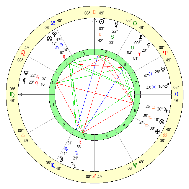 | Sun | 3 Gemini 43 | 4 Gemini 44 | 8 Virgo 29 |