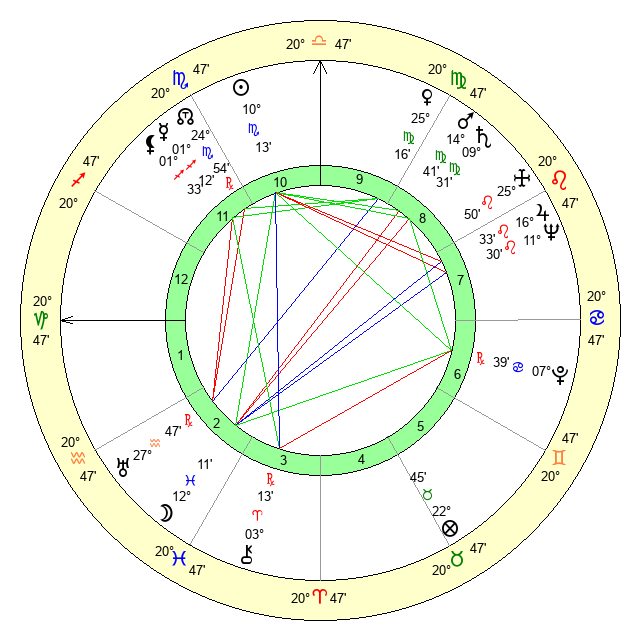 | Mars | 14 Virgo 41 | 29 Scorpio 24 | 5 Scorpio 21 |