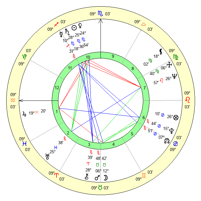 | Sun | 25 Scorpio 37 | 26 Scorpio 36 | 6 Pisces 6 |