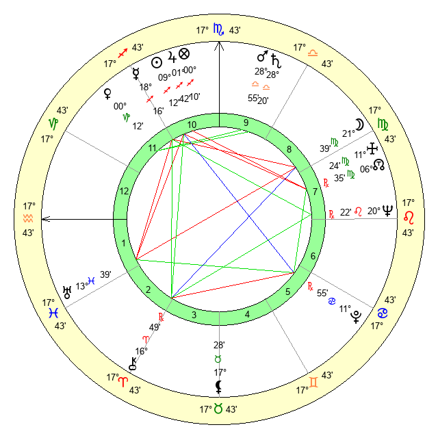 | Saturn | 28 Libra 54 | 25 Pisces 4 | 2 Scorpio 9 |