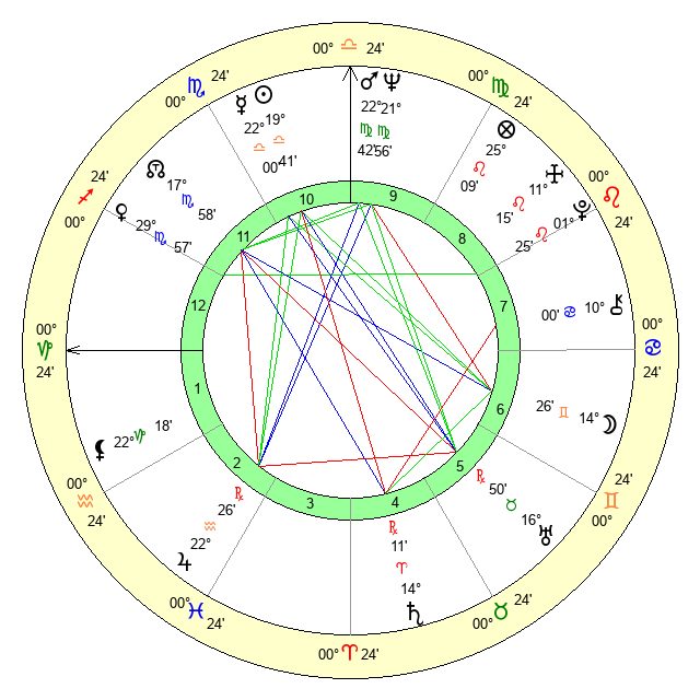 | Mars | 22 Virgo 42 | 14 Scorpio 36 | 17 Scorpio 16 |