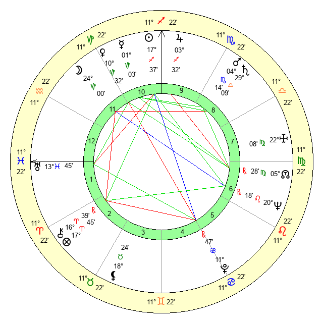 | Saturn | 29 Libra 43 | 25 Pisces 12 | 1 Scorpio 42 |