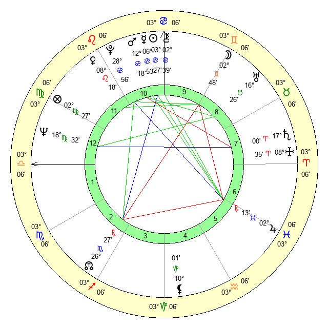 | Mars | 12 Cancer 18 | 4 Virgo 44 | 8 Virgo 9 |