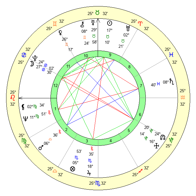 | Mars | 6 Libra 34 | 9 Leo 13 | 4 Scorpio 25 |