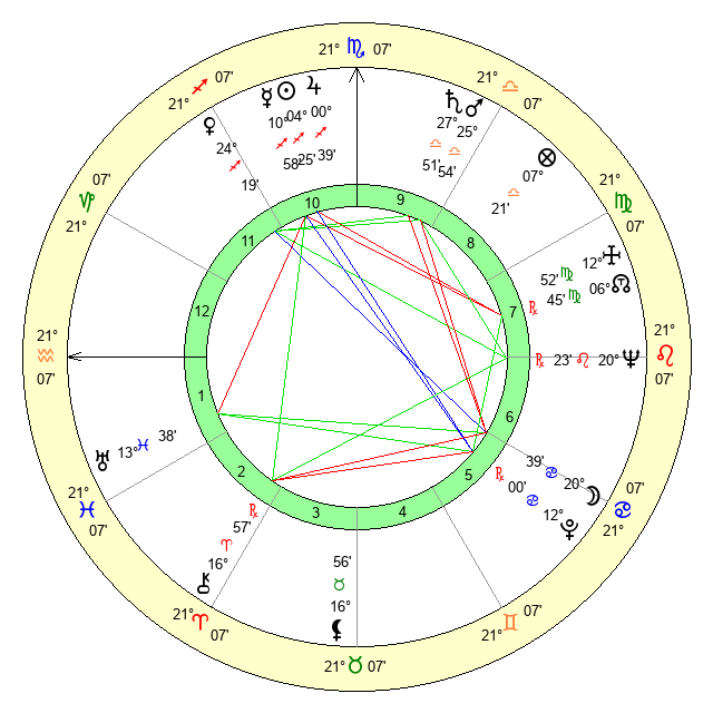 | Saturn | 28 Libra 25 | 25 Pisces 3 | 2 Scorpio 22 |