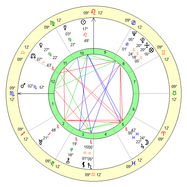 | Venus | 27 Virgo 22 | 13 Cancer 27 | 2 Scorpio 16 |