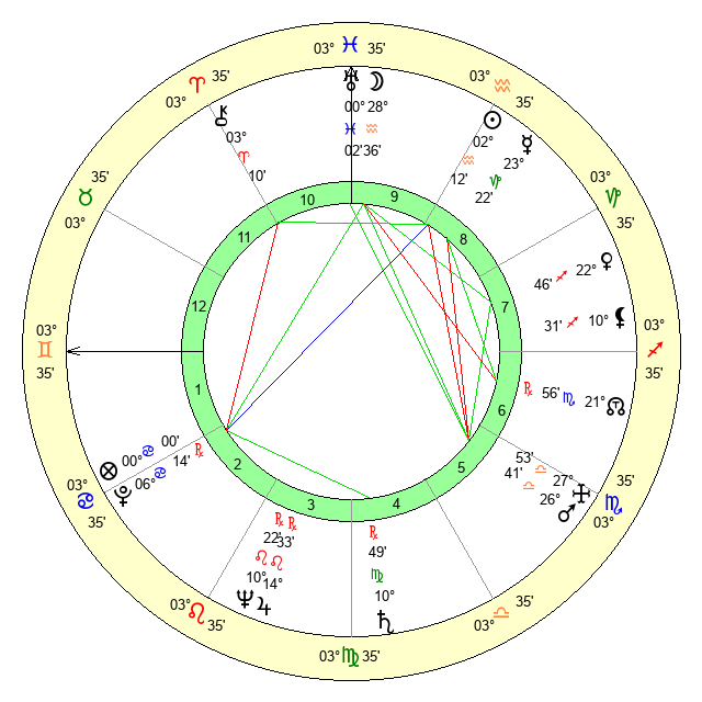 | Saturn | 11 Virgo 34 | 16 Pisces 28 | 5 Virgo 32 |