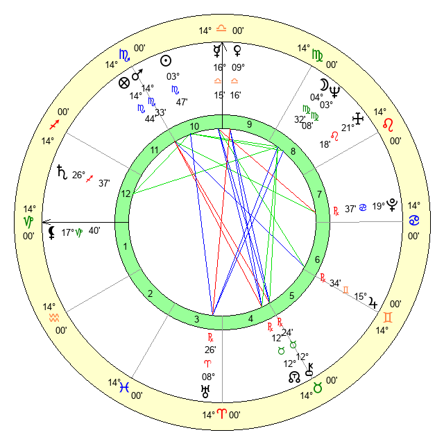 | Neptune | 3 Virgo 9 | 29 Pisces 52 | 2 Virgo 47 |