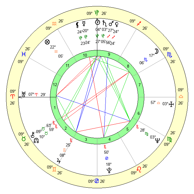| Neptune | 3 Virgo 28 | 27 Pisces 13 | 1 Virgo 15 |