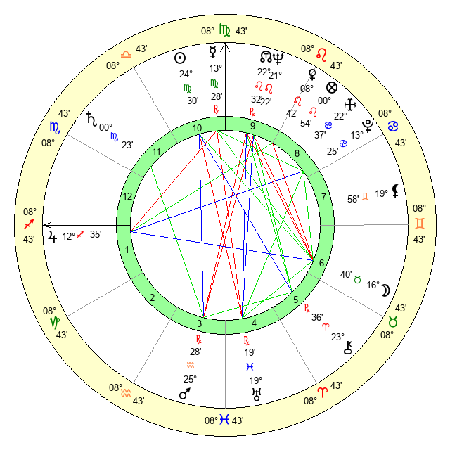 | Mercury | 13 Virgo 28 | 28 Virgo 43 | 4 Capricorn 55 |