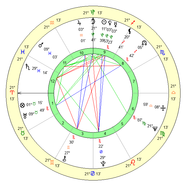 | Mars | 9 Pisces 3 | 1 Leo 21 | 13 Taurus 9 |