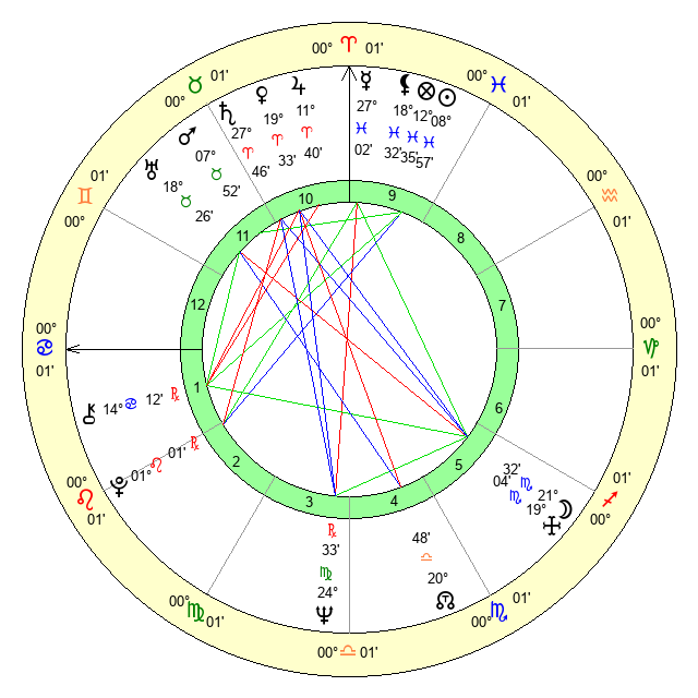 | Sun | 8 Pisces 58 | 10 Pisces 21 | 2 Gemini 23 |