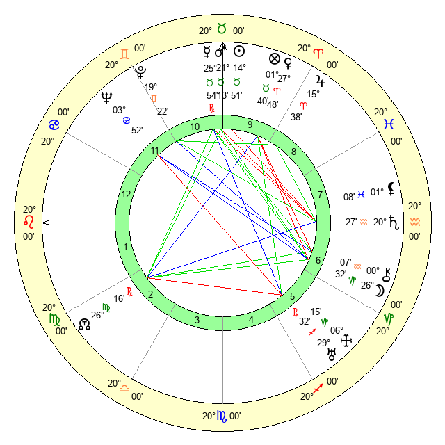 | Mars | 21 Taurus 13 | 7 Leo 51 | 12 Leo 36 |