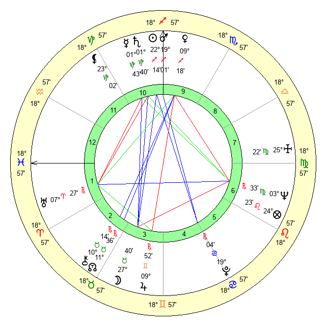 | Neptune | 3 Virgo 34 | 27 Pisces 8 | 1 Virgo 31 |