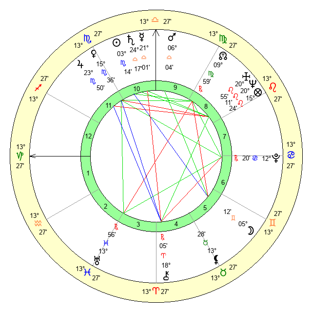 | Uranus | 13 Pisces 56 | 0 Gemini 27 | 15 Pisces 48 |