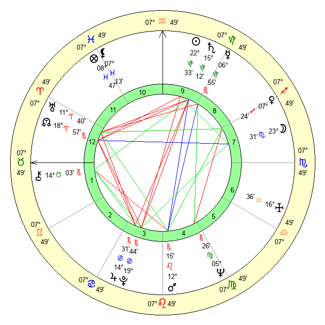 | Neptune | 5 Virgo 26 | 27 Pisces 30 | 3 Virgo 11 |