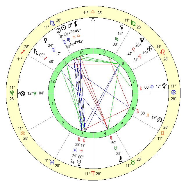 | Moon | 1 Scorpio 57 | 18 Sagittarius 11 | 5 Gemini 30 |
