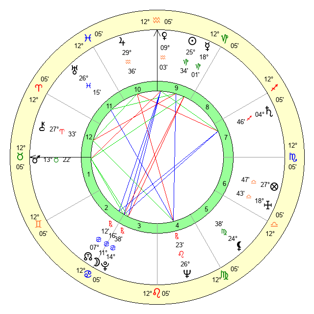 | Venus | 9 Aquarius 4 | 13 Pisces 50 | 9 Gemini 23 |