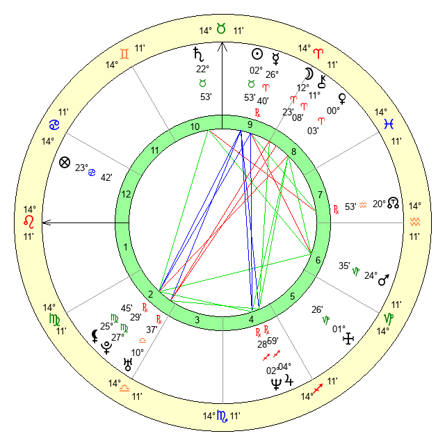 | Saturn | 23 Taurus 7 | 27 Pisces 0 | 29 Taurus 59 |