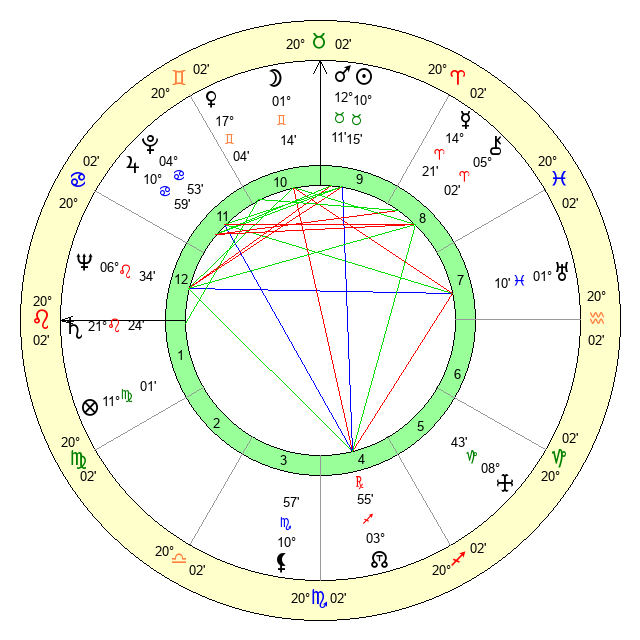 | Neptune | 6 Leo 34 | 1 Aries 7 | 9 Leo 32 |
