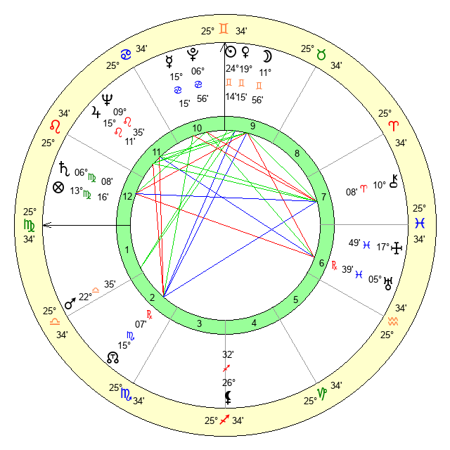| Sun | 24 Gemini 15 | 24 Gemini 50 | 5 Libra 15 |