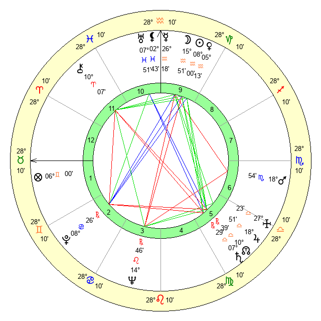 | Venus | 5 Aquarius 13 | 24 Pisces 45 | 13 Gemini 0 |