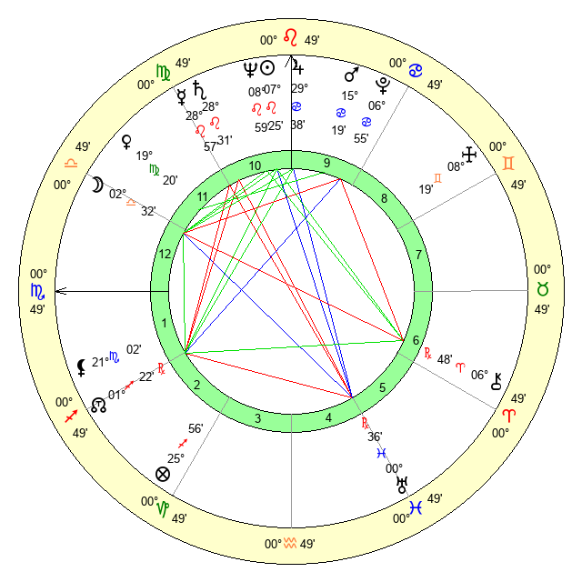 | Moon | 2 Libra 42 | 29 Libra 51 | 21 Leo 55 |