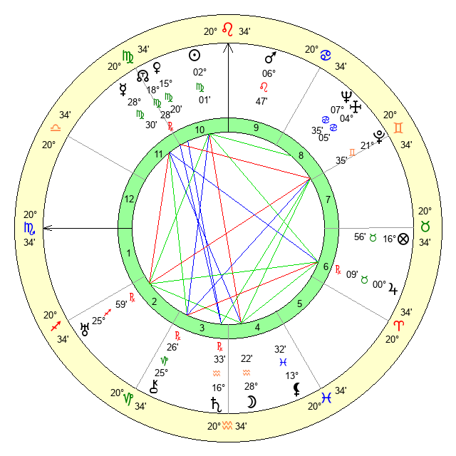 | Mercury | 28 Virgo 31 | 16 Leo 6 | 16 Capricorn 37 |