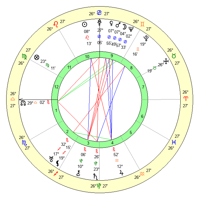 | Neptune | 2 Cancer 34 | 1 Aries 58 | 2 Cancer 56 |