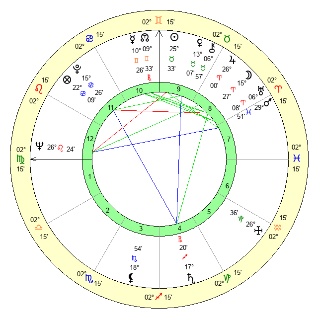 | Mars | 29 Pisces 52 | 13 Leo 9 | 7 Gemini 50 |