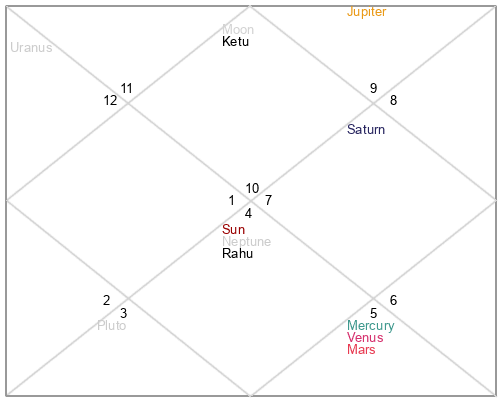 | Ketu | 4 Aquarius 12 | 20 Virgo 4 | 28 Capricorn 54 |