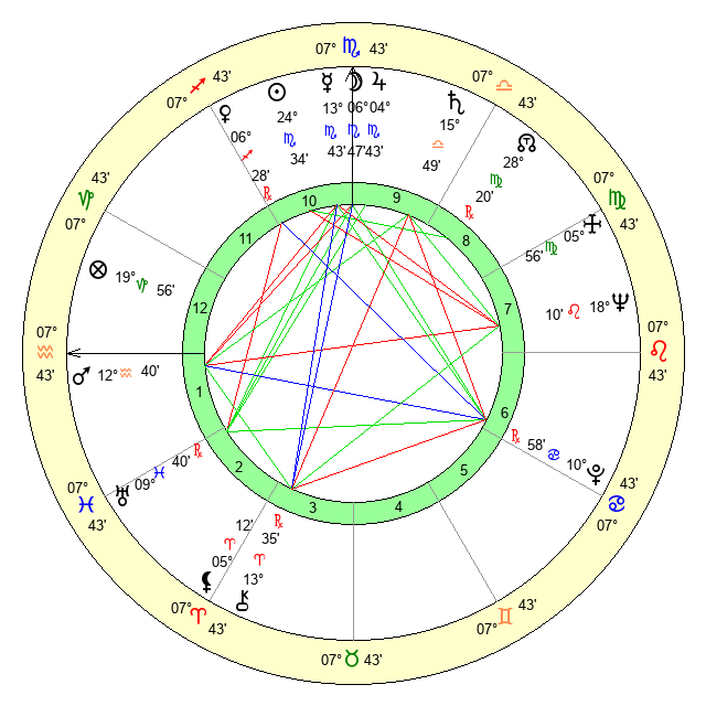 | Moon | 6 Scorpio 53 | 27 Libra 34 | 6 Leo 8 |