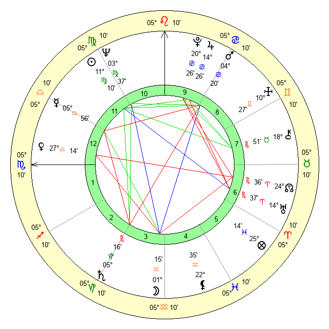 | Neptune | 3 Virgo 24 | 27 Pisces 18 | 1 Virgo 8 |