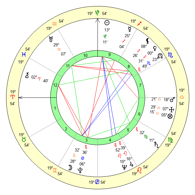 | Saturn | 12 Virgo 16 | 14 Pisces 45 | 5 Virgo 51 |