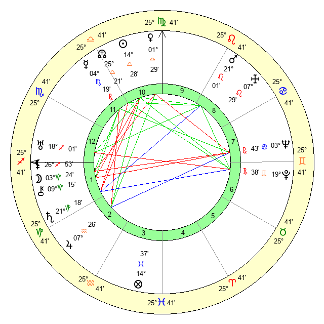 | Venus | 1 Libra 30 | 23 Virgo 35 | 5 Pisces 51 |