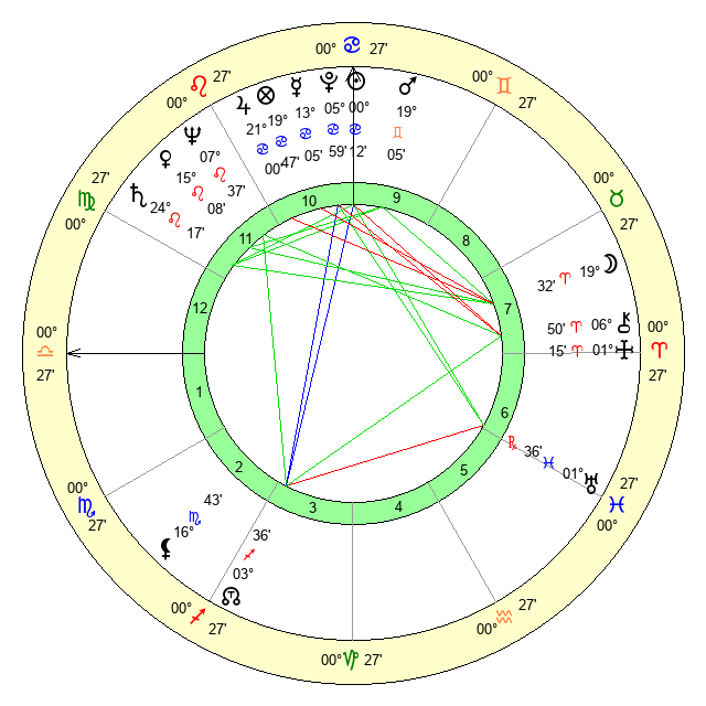 | Mercury | 13 Cancer 6 | 24 Cancer 17 | 19 Libra 19 |