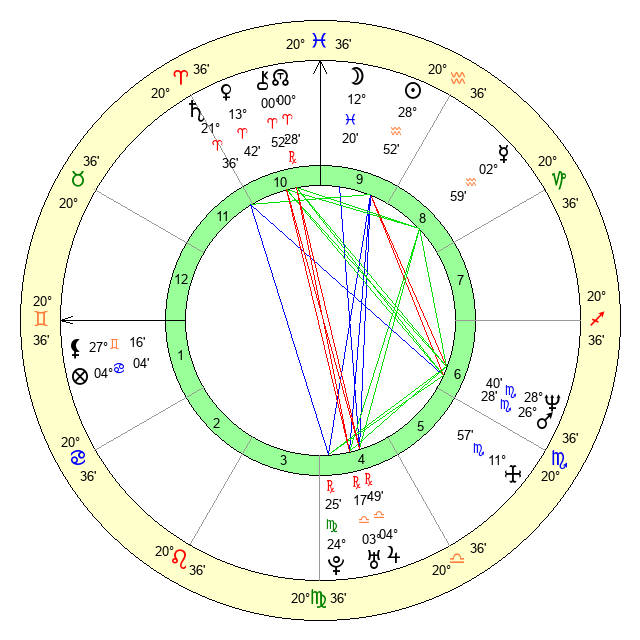 | Moon | 12 Pisces 19 | 26 Libra 16 | 0 Aries -13 |