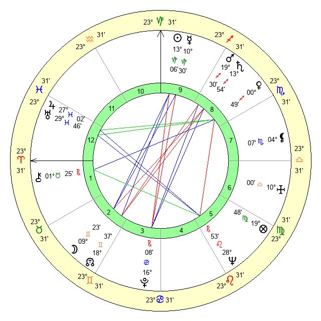 | Moon | 9 Gemini 34 | 14 Pisces 47 | 20 Sagittarius 54 |