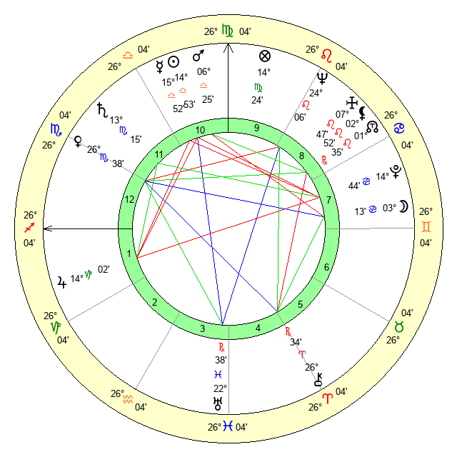| Saturn | 13 Scorpio 44 | 27 Pisces 4 | 24 Scorpio 37 |