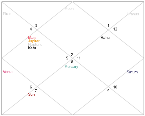 | Neptune | 9 Virgo 57 | 29 Pisces 33 | 9 Virgo 10 |