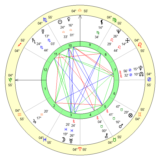 | Moon | 19 Pisces 31 | 24 Virgo 15 | 0 Scorpio 27 |