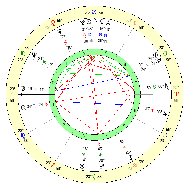 | Moon | 19 Libra 15 | 2 Cancer 37 | 12 Sagittarius 35 |