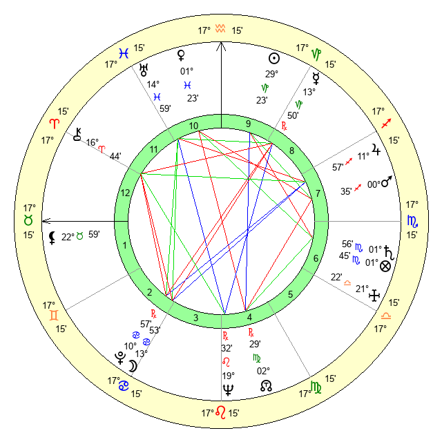| Saturn | 2 Scorpio 31 | 16 Pisces 11 | 28 Libra 49 |