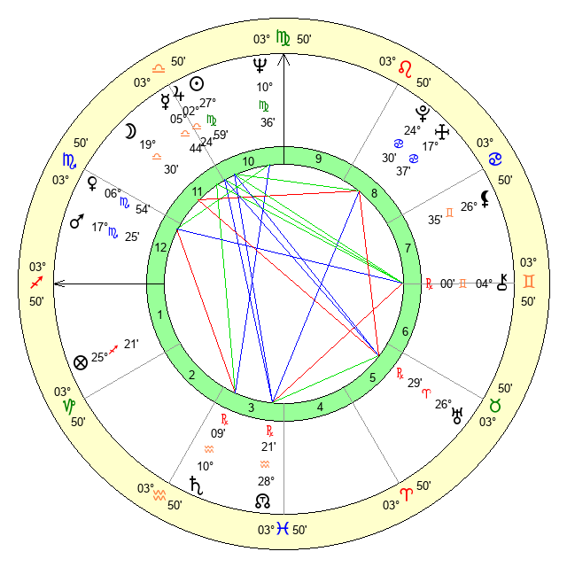 | Venus | 6 Scorpio 54 | 2 Virgo 21 | 13 Aquarius 57 |