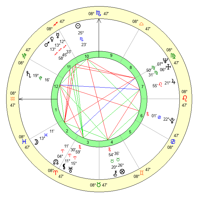 | Neptune | 7 Virgo 51 | 29 Pisces 29 | 6 Virgo 46 |