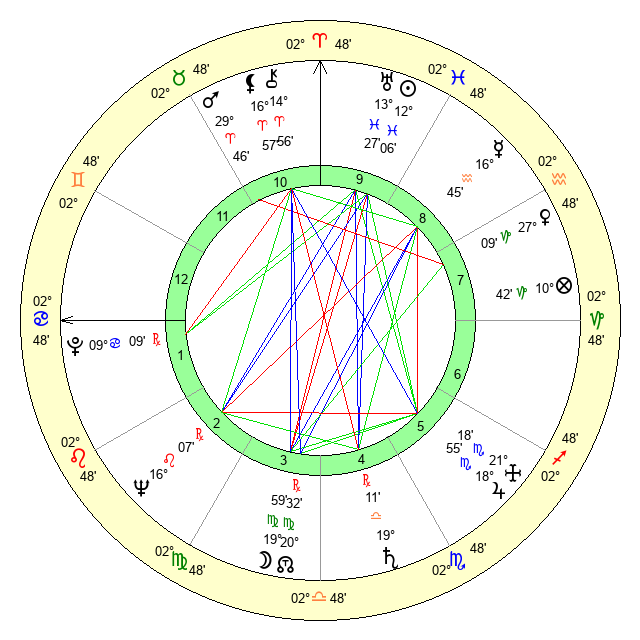 | Mars | 29 Aries 46 | 17 Cancer 22 | 9 Cancer 3 |