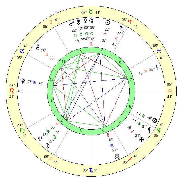 | Mercury | 5 Taurus 31 | 28 Pisces 0 | 2 Leo 51 |